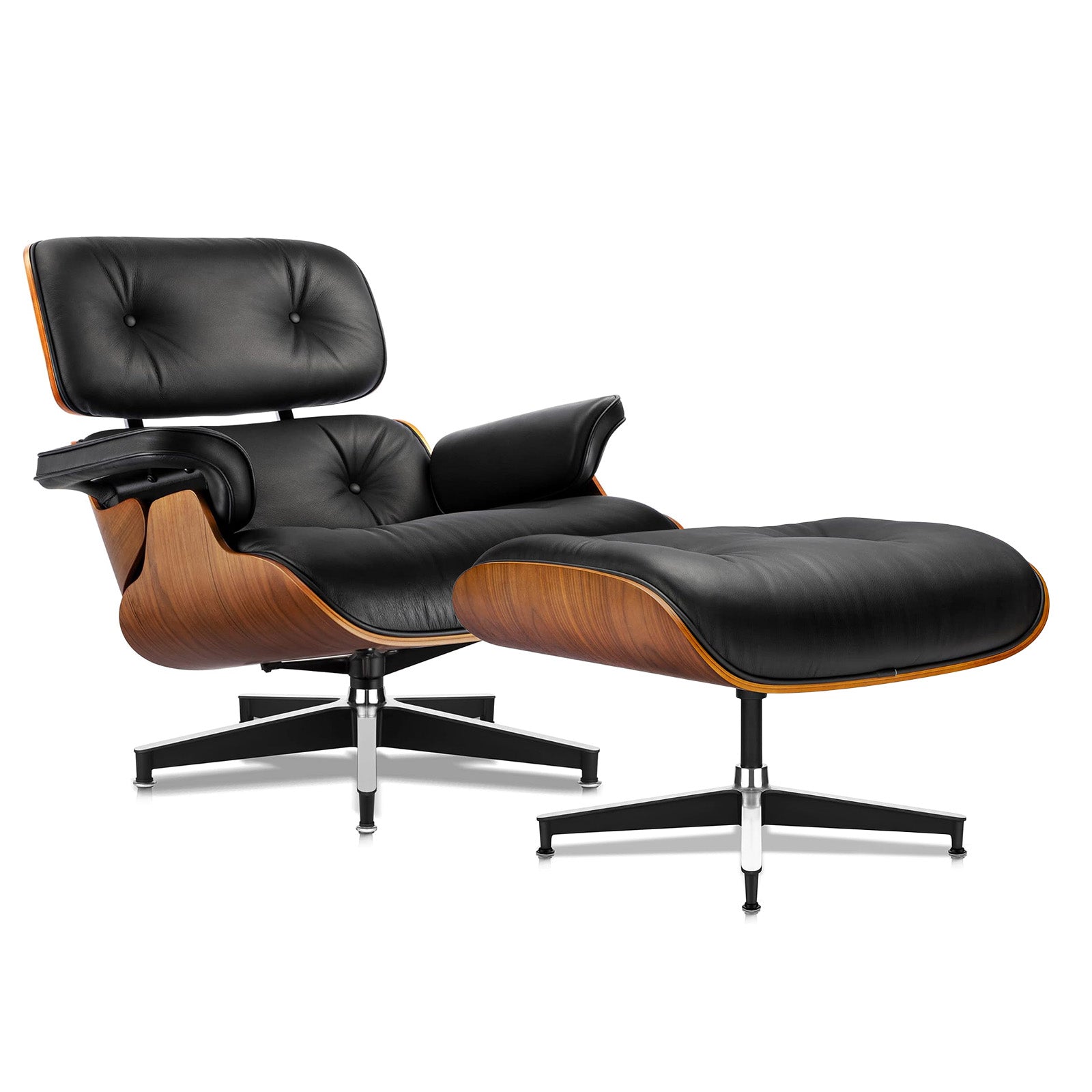 Top Grain Leather, Mid Century Chaise Lounge Chair and Ottoman, Modern Chair Classic Design, Walnut Wood, Heavy Duty Base Support for Living Room Office